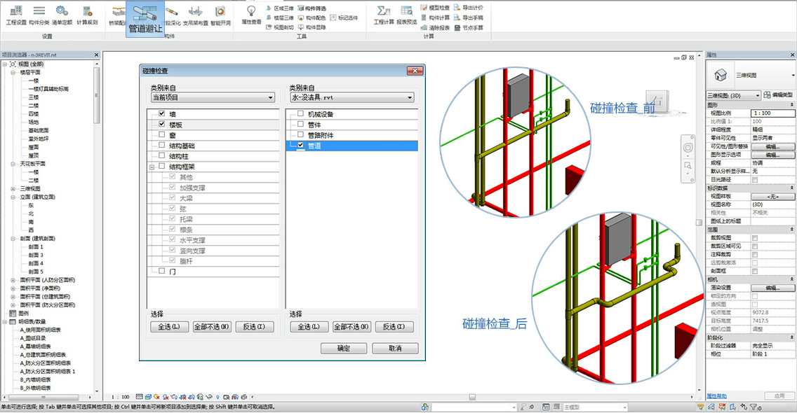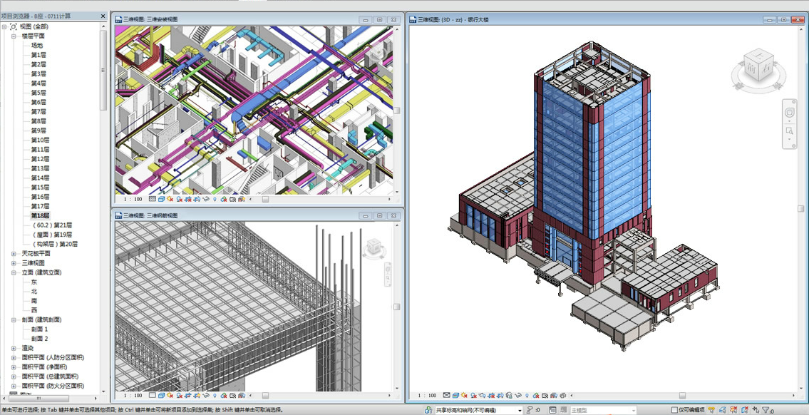 動態漫游三維模型模擬施工過程,各專業圖形進行組合,快速檢查碰撞,計算準確度高