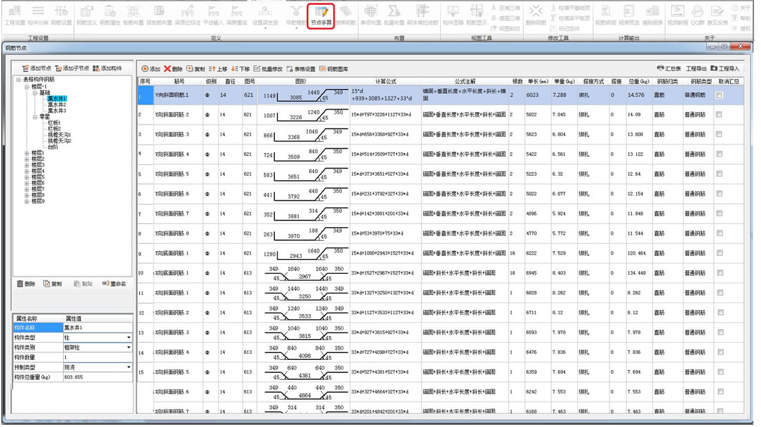 點擊【節(jié)點手算】,添加樓層、節(jié)點、構(gòu)件及表格行,并輸入相應(yīng)信息,即可計算節(jié)點鋼筋!