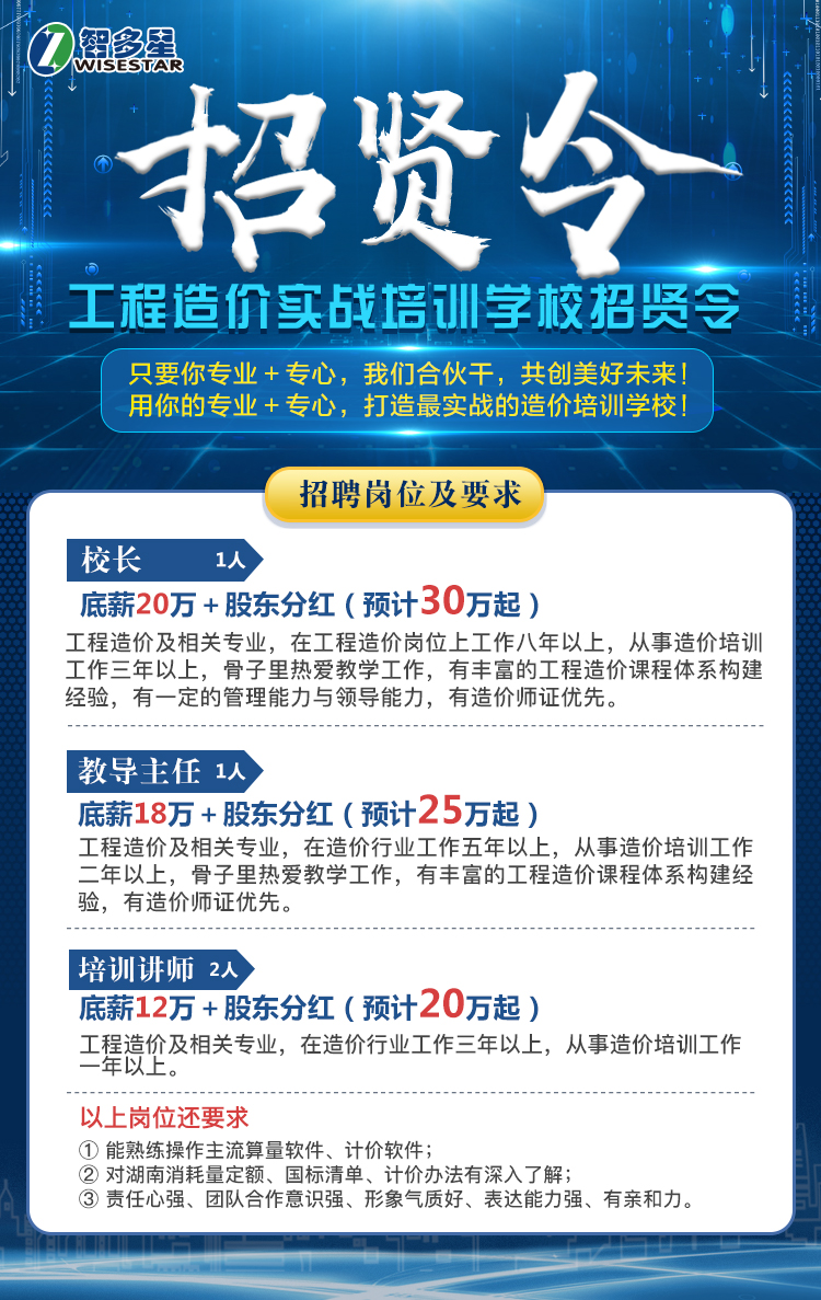 智多星工程造價實戰培訓學校招賢令