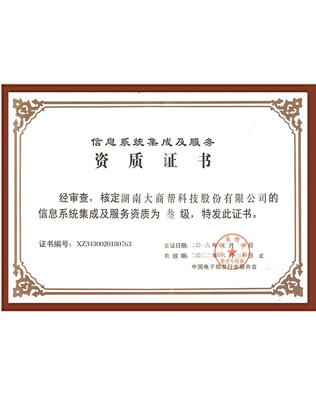 3月,通過信息系統集成及服務三級資質認證。