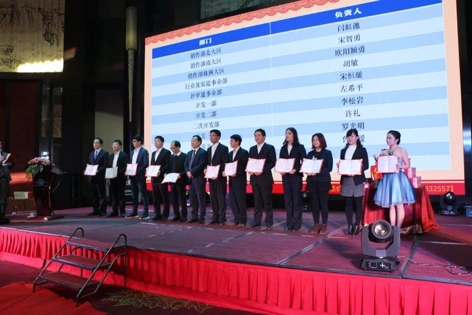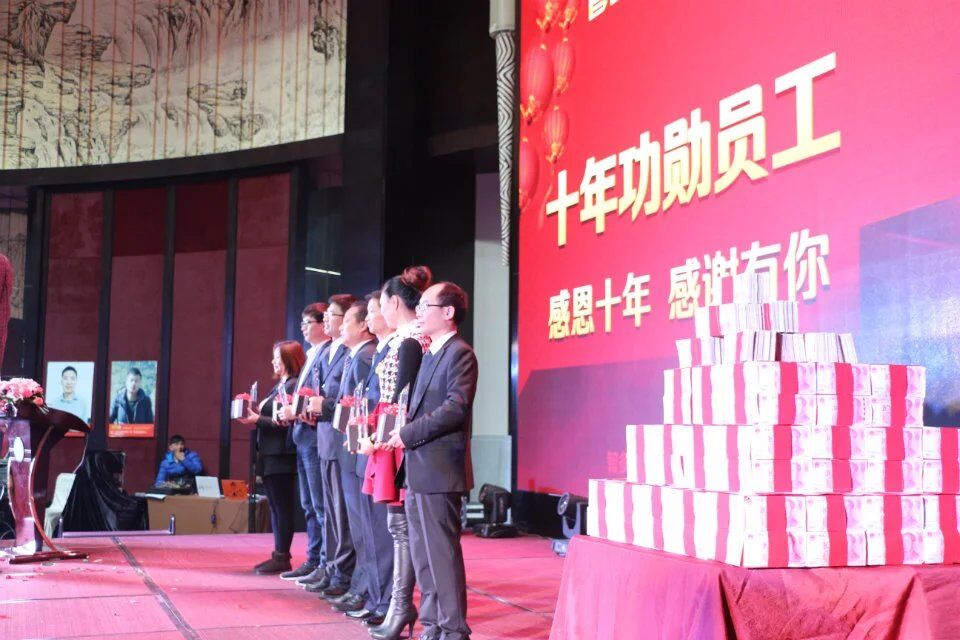 接下來,頒獎典禮頒發(fā)的第一個獎項——十年功勛合伙人獎,臺上六位功勛員工在智多星工作已經(jīng)超過十年時間,從青澀到成熟,從基層到骨干,他們參與了智多星一步步成長的過程,將自己最青春、爛漫的十年奉獻給了智多星!十年同行,感恩有你!