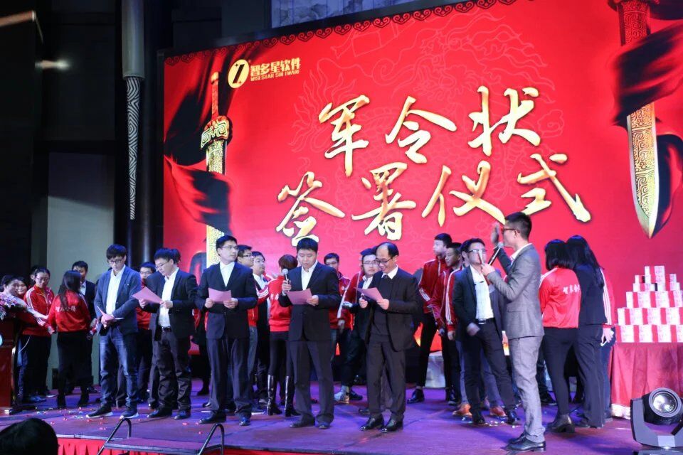 做完了目標分解,各銷售部經(jīng)理在大家的共同見證下簽署了2017年度銷售任務(wù)軍令狀,并當眾承諾“勢必達成”!