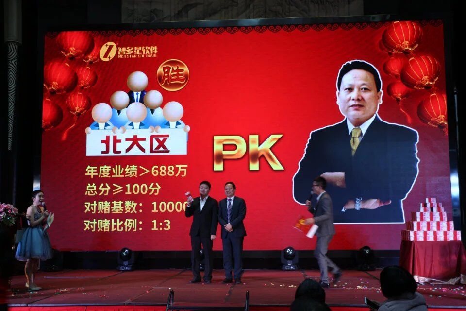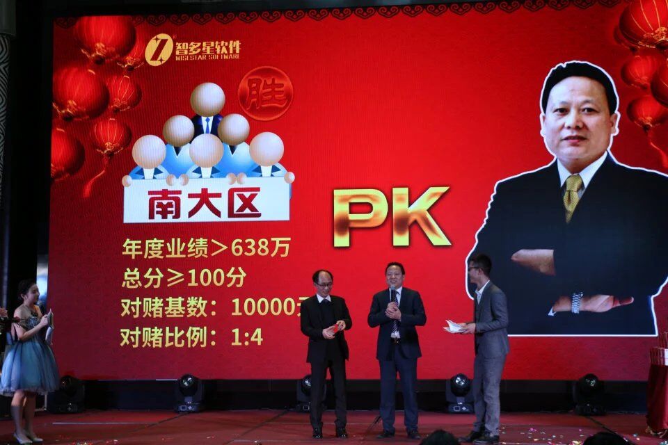 在每年的雙十二活動之前,各銷售部都會跟何總在完成年度業(yè)績目標的基礎(chǔ)上對賭業(yè)績。這一次,南大區(qū)和北大區(qū)分別以1:4和1:3的比例贏了何總七萬RMB。何總說,愿賭服輸,他輸?shù)煤荛_心!