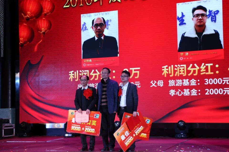 2016年度優(yōu)秀員工——優(yōu)秀銷售精英獎。他們將分別獲得6000元學(xué)習(xí)基金和6000元出國旅游基金,他們的父母還獲得價值3000元的旅游基金以及2000元的學(xué)習(xí)基金。