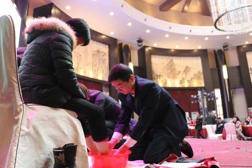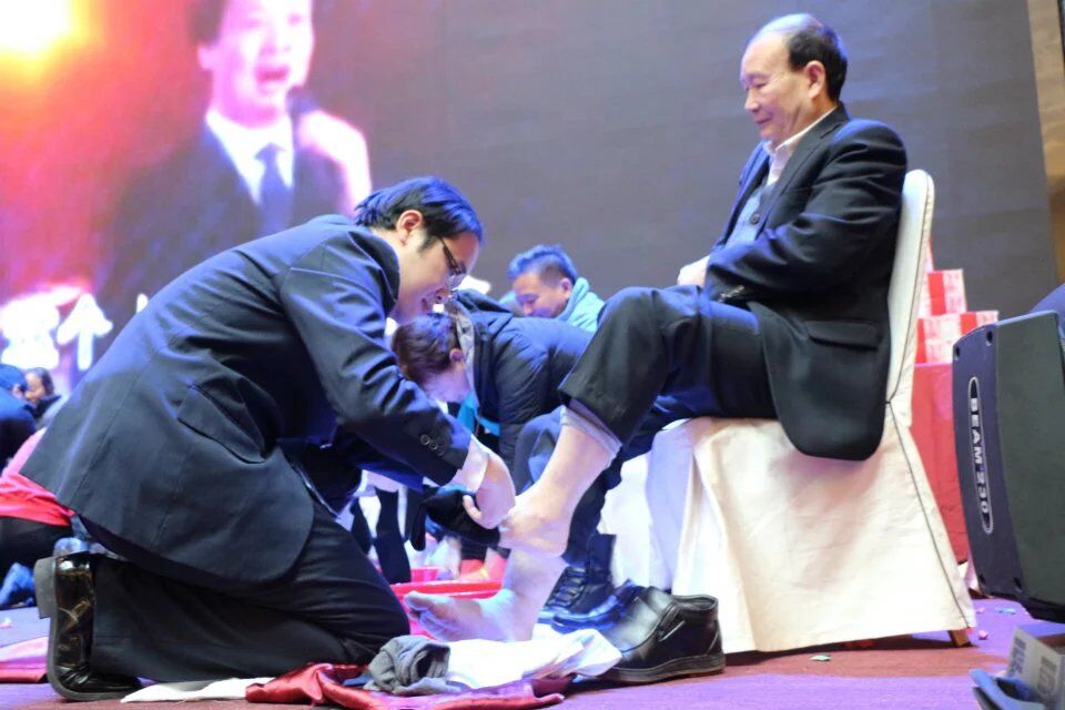 孝道文化是智多星重要的企業(yè)文化之一。在頒獎典禮上,二十多位智多星優(yōu)秀員工將自己的父母請上臺,為他/她們洗腳,感謝父母的養(yǎng)育之恩!