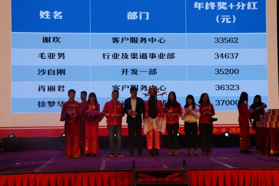 年終獎超過兩萬的智多星員工都有機會上臺領(lǐng)取年終獎,看大家的表情,好開心好開心哦!