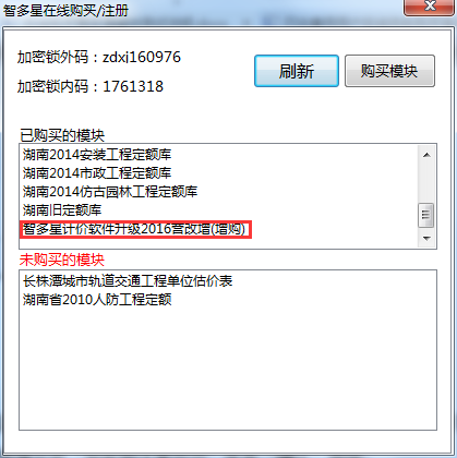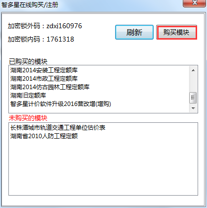 第六步:如需繼續購買其他模塊,請點擊‘購買模塊’按鈕;如無需購買,關閉對話框即可,此時您的加密鎖已成功完成2016營改增升級。