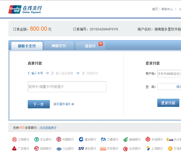 第七步(1):如果您選擇銀聯支付,(您任何一張帶有銀聯標識的儲蓄卡都能通過此種方式付款,無需開通網銀):在此界面上,您可以選擇“銀聯卡支付”,但需要事先開通網絡在線支付功能。如果您已開通了網銀,您最好選擇“網銀支付”,這樣既快捷又方便。選擇好支付方式,填寫好相應信息,您按相應提示即可完成支付。