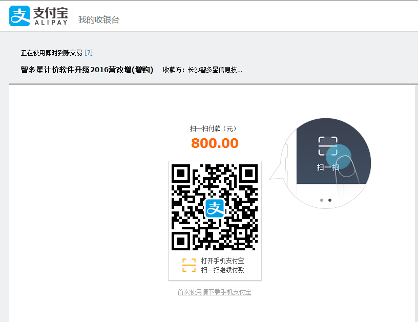 (2):如果您選擇支付寶付款,將在瀏覽器出現以下頁面:
